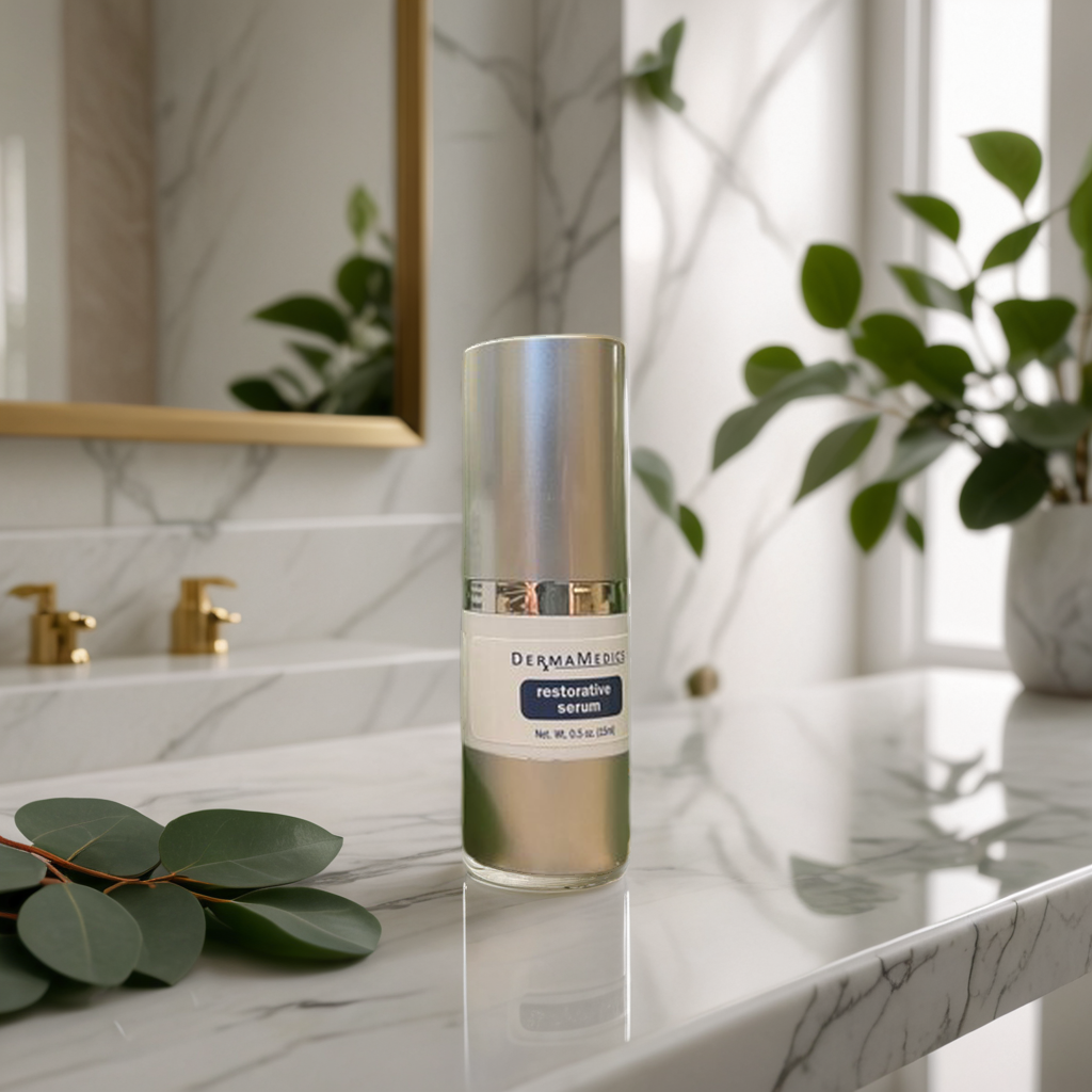 This 15ml size version of our best selling Restorative Serum is perfect for those trips out of town. Restorative Serum contains a unique and powerful form of Vitamin C along with Therosol and 2 additional patented, high potency antioxidants. These potent ingredients are blended together with skin friendly natural oils into a gentle silicone based serum that can be used on even the most sensitive skin. The cosmetic silicone in the product minimizes the appearance of lines and wrinkles while the powerful antioxidants block free radicals which can damage and age skin. Restorative Serum utilizes DermaMedics' proprietary "bioactive phase partitioning" technology to deliver these age-defying ingredients to the skin at high concentration. This serum is ideal for use prior to applying makeup. Can be used morning and night to help retain moisture and prevent dryness. This gentle moisture-retaining formulation is non-comedogenic, designed for sensitive skin, and preservative-free. 0.5oz