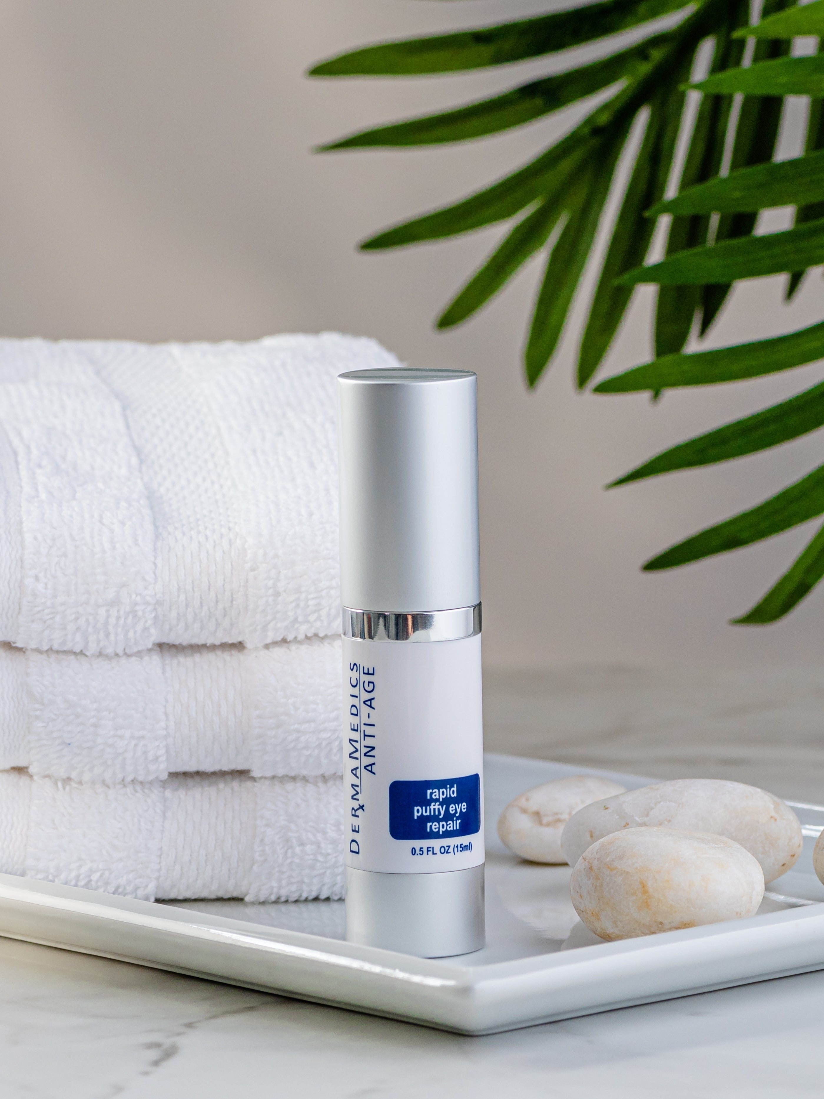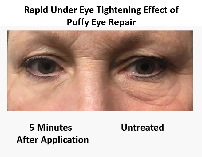 Rapid Puffy Eye Repair is a temporary skin tightening serum. It contains several ingredients that shrink when the water in the product evaporates. This shrinking pulls and tightens the surrounding skin. To use this product correctly, follow these simple instructions