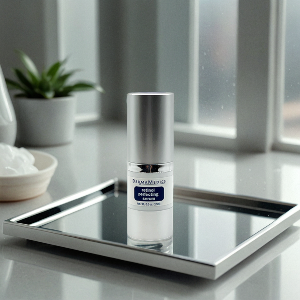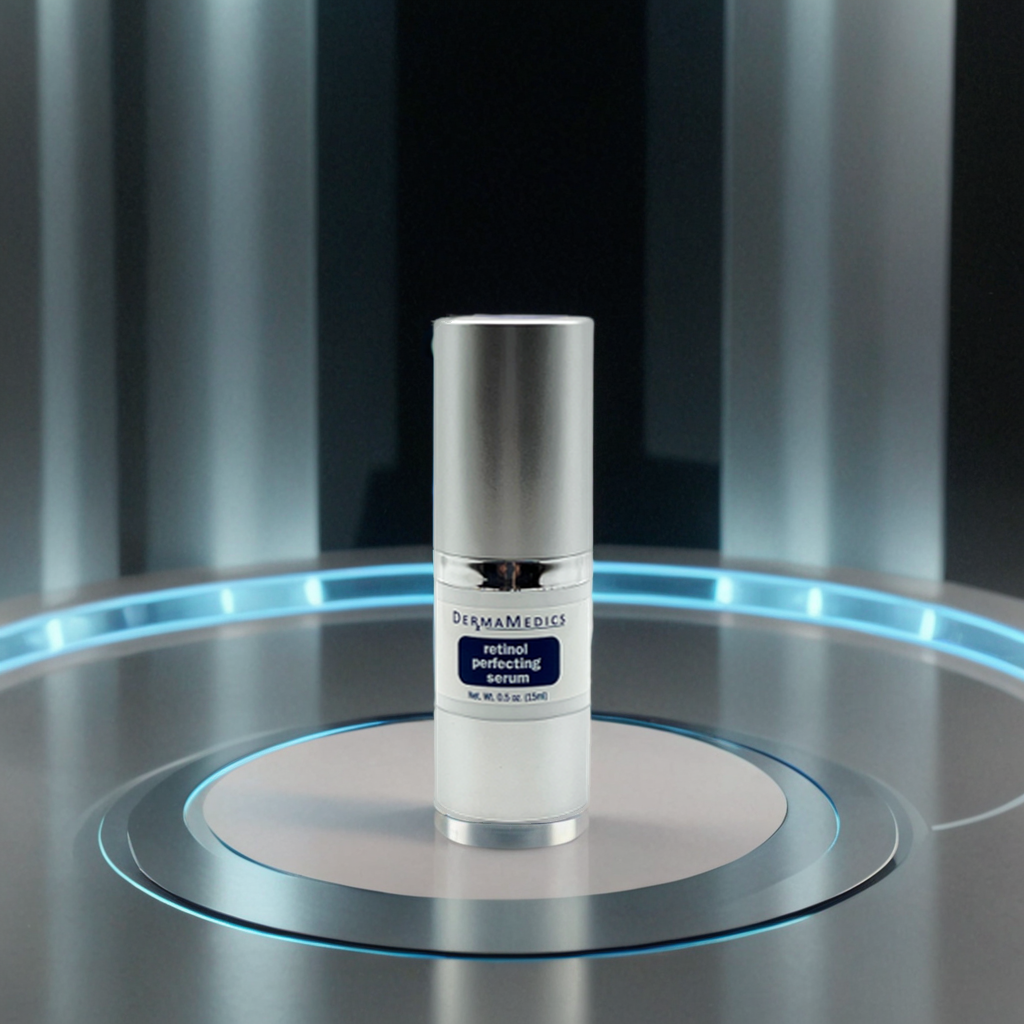 Our popular Retinol Perfecting Serum is now available in a smaller 15ml size that comes with an attractive price and is perfect for traveling. Retinol Perfecting Serum provides all the benefits of retinol in a gentle silicone based serum that is NON-IRRITATING. Unlike any other retinol product, this product combines 2 patented potent antioxidants with 3 different forms of retinol to produce a high concentration retinol product that is delivered to the skin over many hours. The product will not cause redness, dryness or irritation. These potent retinols are blended together with skin friendly natural oils into a gentle silicone based serum that can be used on even the most sensitive skin. Therosol and one other patented antioxidant block free radicals which can damage and age skin. Retinol Perfecting Serum utilizes DermaMedics' proprietary "bioactive phase partitioning" technology to deliver the 3 retinols and Therosol to the skin at high concentration. Specifically designed for sensitive skin. Non-comedogenic and preservative-free. Do not use a retinol product if you are pregnant, lactating or planning to become pregnant. Use a sunscreen with retinol products.