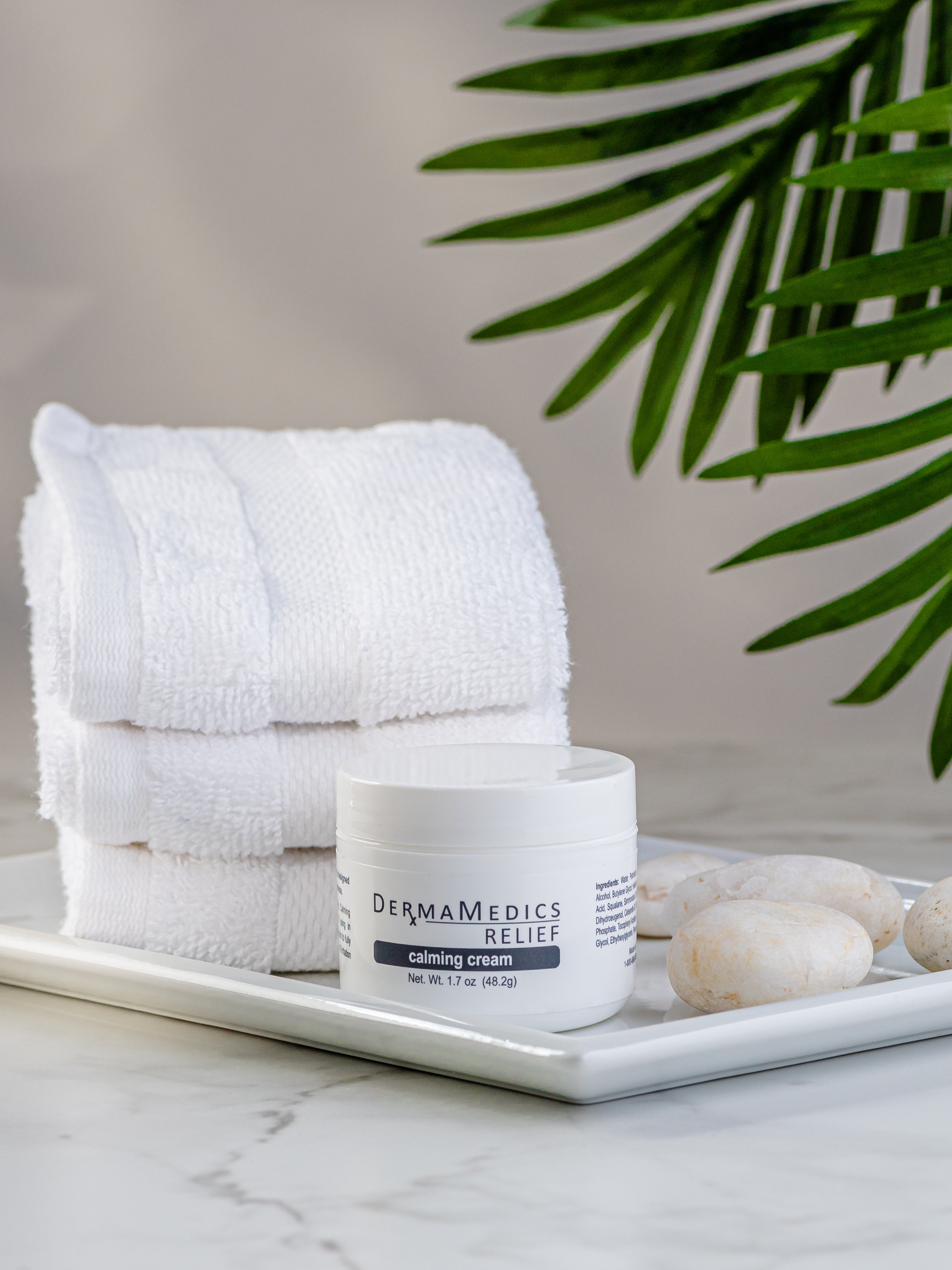 Calming Cream is a highly moisturizing formulation containing high levels of humectants and natural oils. It is specifically designed to protect skin from dehydration and to soothe skin damaged by medical procedures and by over-exposure to harsh environmental conditions.