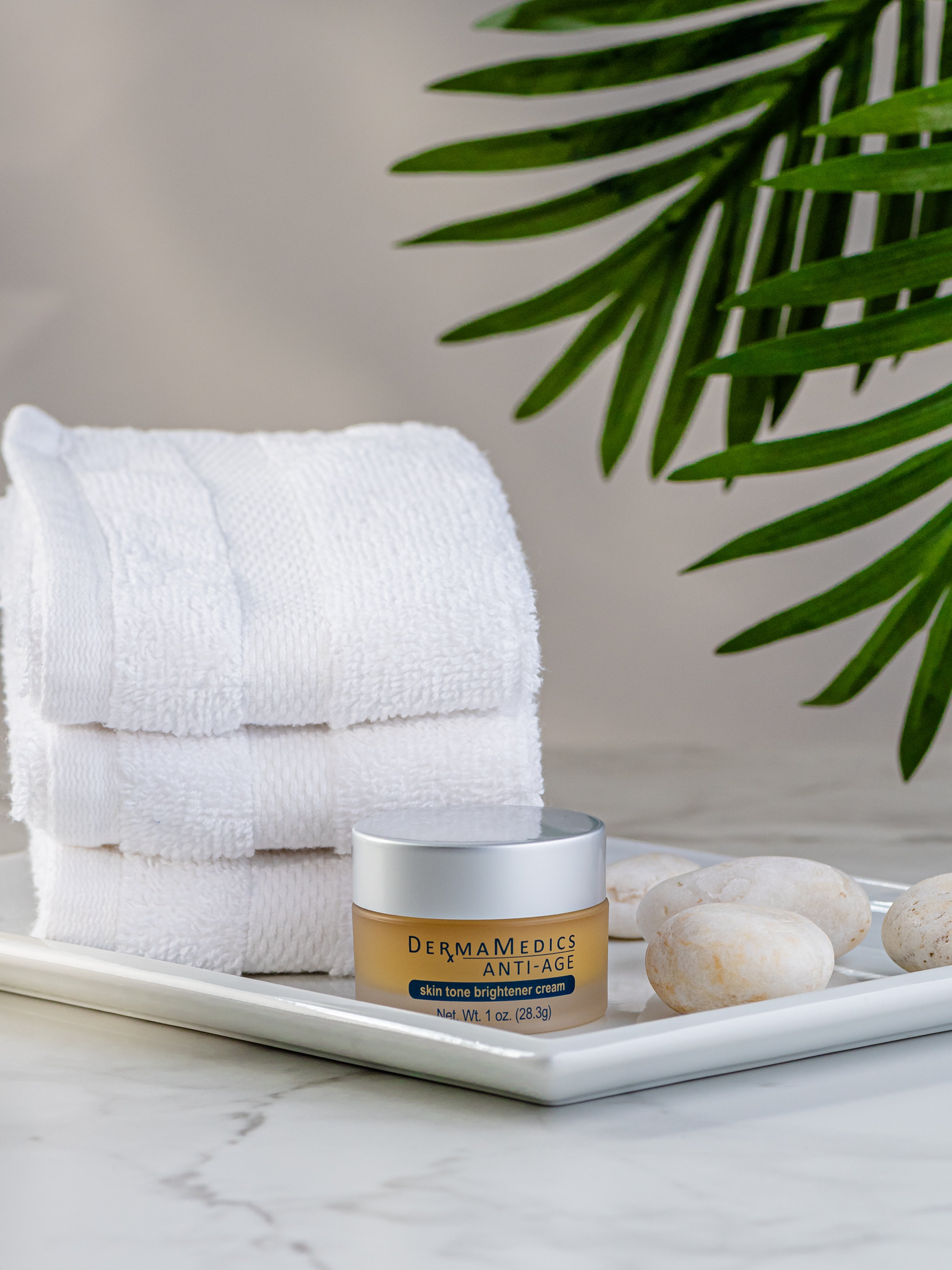 DermaMedics has modified and strengthened the Skin Tone Brightener Cream by incorporating the Company's "10X Defense" proprietary blend of 10 powerful antioxidants into the formulation. The new additions to the formulation include Resveratrol, Ferulic Acid, Tetrahydrocurcumin, Tetrahexadecyl Ascorbate (a stable form of Vitamin C), and Hydroxypinacolone Retinoate (a novel and potent form of Vitamin A). The yellow color of the product comes from the Vitamin A derivative. The 10 different antioxidants in this product block free radicals that can damage skin. In addition, these antioxidants have been scientifically shown to reduce the appearance of dark spots. This new formulation also uses a paraben-free preservative system. Product contains a retinol. Do not use a retinol product if you are pregnant, lactating or planning to become pregnant. Use a sunscreen with retinol products. 1oz