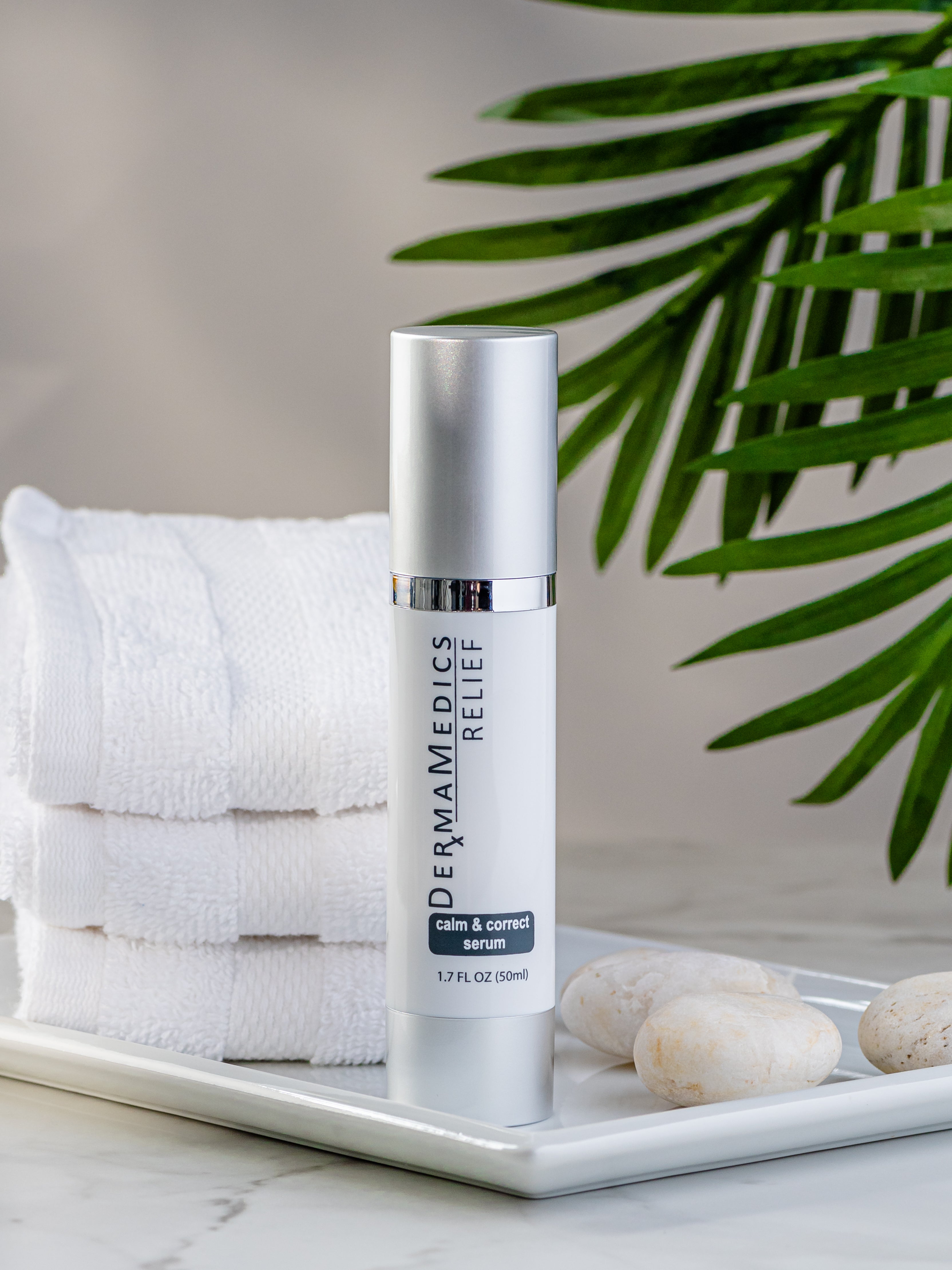 Calm & Correct Serum is a gentle silicone-based serum designed to moisturize, protect and visibly improve the appearance of rough, damaged skin. Specifically designed for use to calm sensitive and inflamed skin resulting from cosmetic and medical procedures. This product will soothe and help prevent the loss of water from damaged and abraded skin.