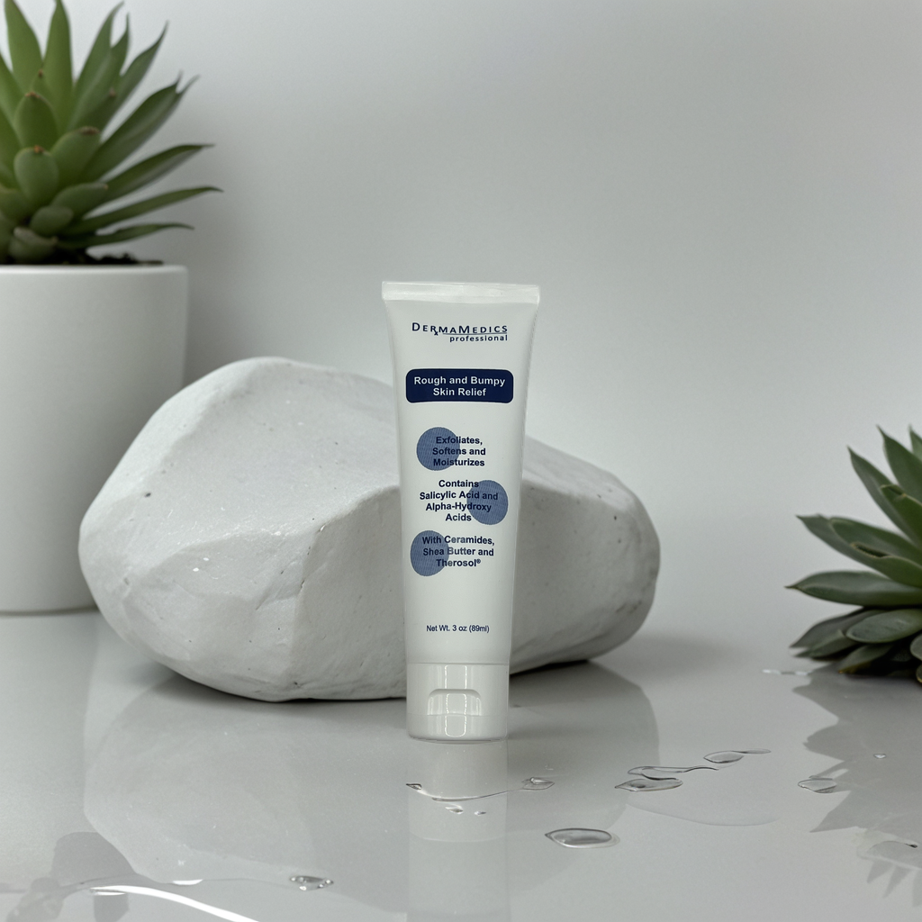 Rough and Bumpy Skin Relief has been designed to gently smooth and exfoliate rough, scaly and bumpy skin. This lotion contains urea as well as a beta-hydroxy acid and 3 alpha hydroxy acids to gently exfoliate dead skin cells. The product also contains a complex of ceramides that are naturally found in skin and which play an important role in maintaining the skin’s protective barrier. Rough and Bumpy Skin Relief will gently smooth and soften skin, eliminate roughness and improve skin texture. Niacinamide and our patented antioxidant compounds help to calm the skin, and reduce the appearance of redness. This product is fragrance-free, paraben-free and non-comedogenic. Not tested on animals.